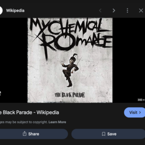 For those of you who aren’t aware, these lyrics are from a song by My Chemical Romance called “Black Parade.”